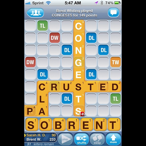 149 point word?! That’s SO BRENT! Ha! Peace to Sarah Hunt Drennan. Only one to beat me 3 and 4 times straight! Grrrr..!! / Uncategorized / By The Zodiac